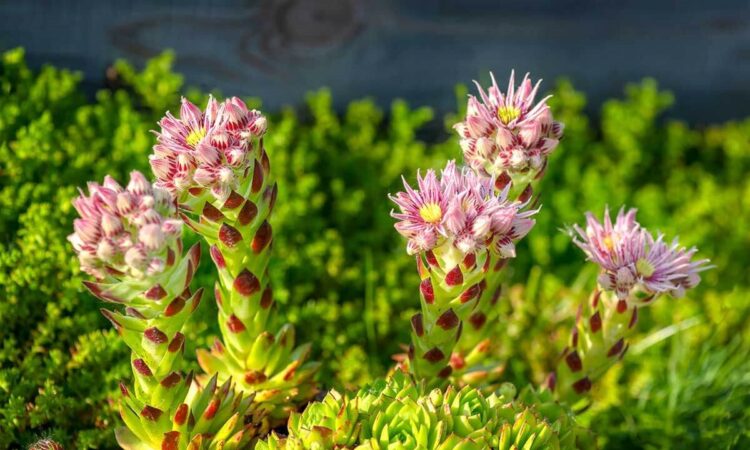 - Sempervivum tectorum: vytváří husté dužnaté růžice leskle zelených listů s purpurově červenými špičkami, ideální do skalek nebo na zastřešení, kde se umocní její odolnost a rustikální kouzlo.