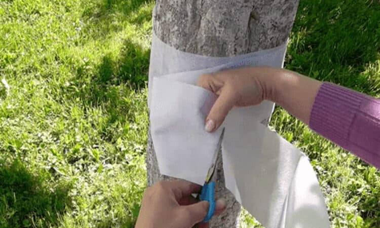 Ještě jednodušším řešením je oboustranná lepící páska. Toto řešení je užitečnější pro mladé stromy s úzkými kmeny a hladší kůrou.