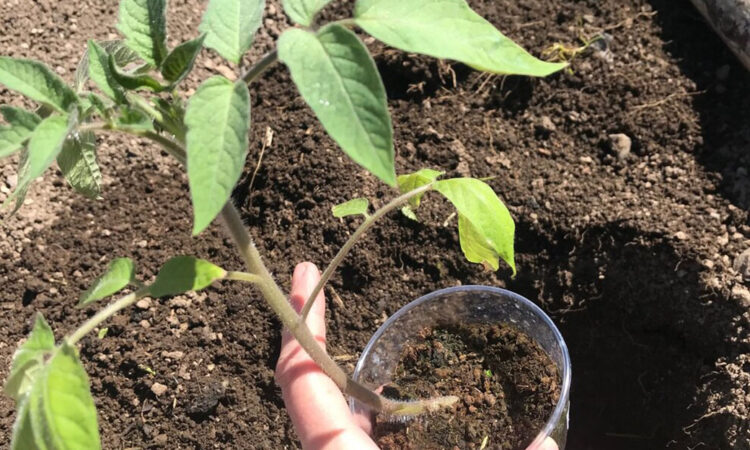 Když budete rajčata propichovat, zasaďte je co nejhlouběji. Na povrch by měl vykukovat pouze růstový vrchol, který měří 10 až 15 cm.